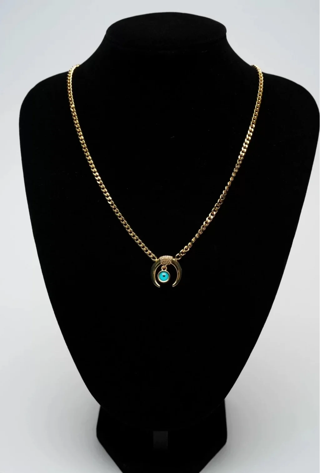 Firuze Taşlı Süryani Nazar Boncuklu Kolye