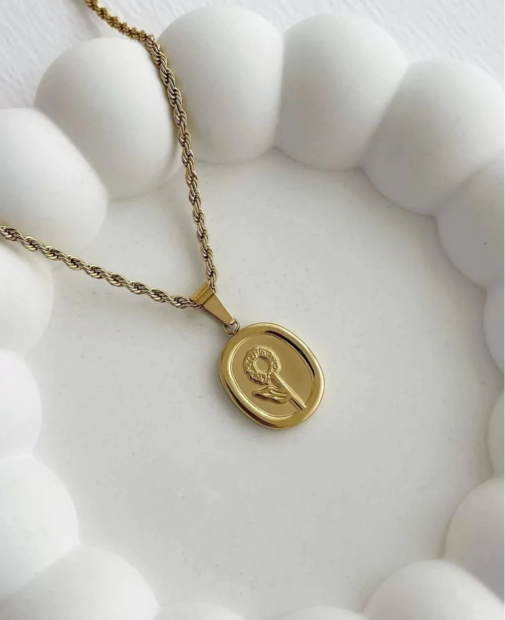 ÇİÇEK FİGÜRLÜ OVAL PLAKA KOLYE