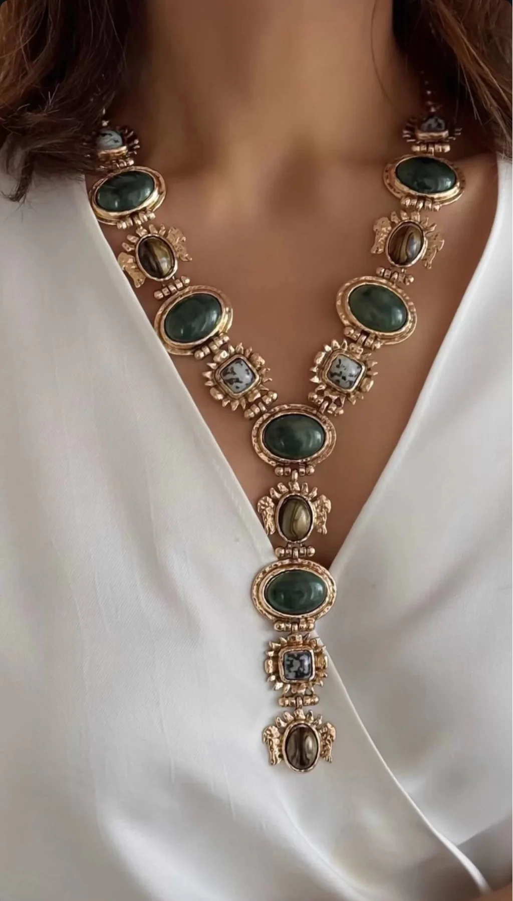 Gold Doğal Taş Detay Geometrik Figürlü Y Model Marka Kolye (60 Cm)