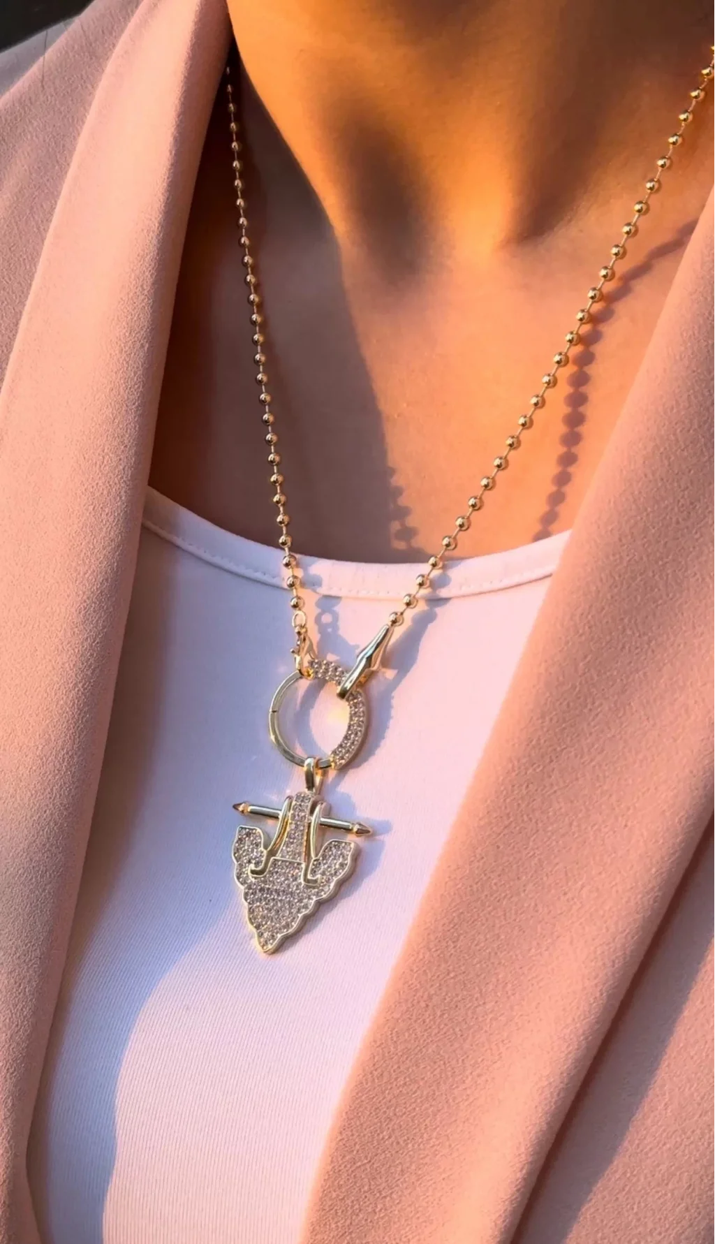 Gold Doğal Taş Detay Geometrik Figürlü Y Model Marka Kolye (60 Cm)